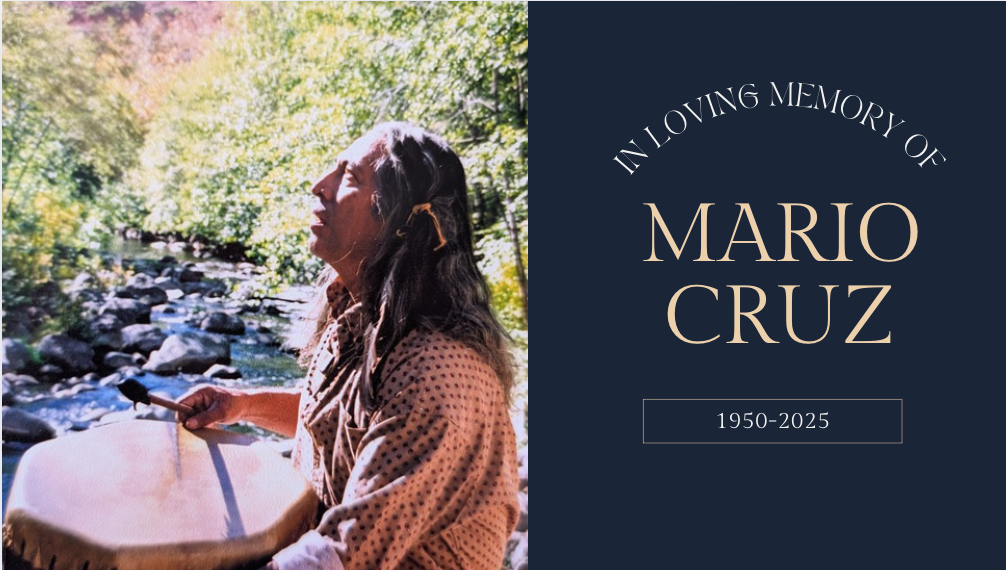 Mario Cruz was a much loved Yaqui journeyman who travelled the world sharing the Earth ways. Mario was an artist who loved to share the beauty and wisdom of his native heritage and his experiences through artwork and also through storytelling. His sacred artwork included the creation of Anishinaabe style 7 sided hand drums, traditional dream-catchers, paintings, jewelry and screen print designs.